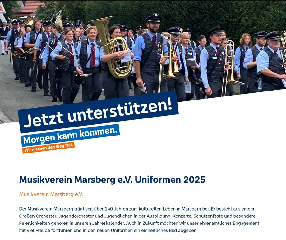 Selbstverständlich ist auch ein Eigenanteil der Musiker/innen vorgesehen. Jedoch möchten wir unsere Schüler und Studenten, sowie Familien, die mit mehreren Musiker/innen im Verein aktiv sind, finanziell nicht zu sehr belasten. Die Kosten der Anschaffung ALLER Uniformen übersteigen das genannte Spendenziel um ein Vielfaches.